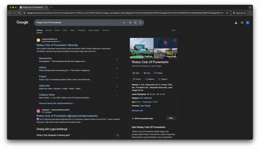 Tak kalah pentingnya, Rotary Club of Purwokerto juga berhasil mengaktifkan kembali titik Google Maps sekretariat mereka, yang kini secara resmi terdaftar di lokasi Kencana Sakti Printing, milik AG Subiantoro. Perjalanan panjang hampir satu tahun untuk mengembalikan keberadaan online ini akhirnya tercapai, berkat kegigihan tim dan dukungan komunitas. Kini siapa pun dapat dengan mudah menemukan dan mengunjungi sekretariat resmi melalui pencarian di Google Maps.